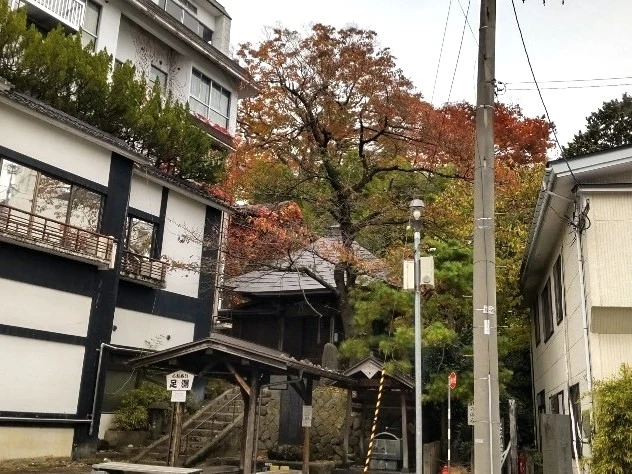 玄関の向かい側にある 足湯に入りながらの 紅葉観賞もおすすめです